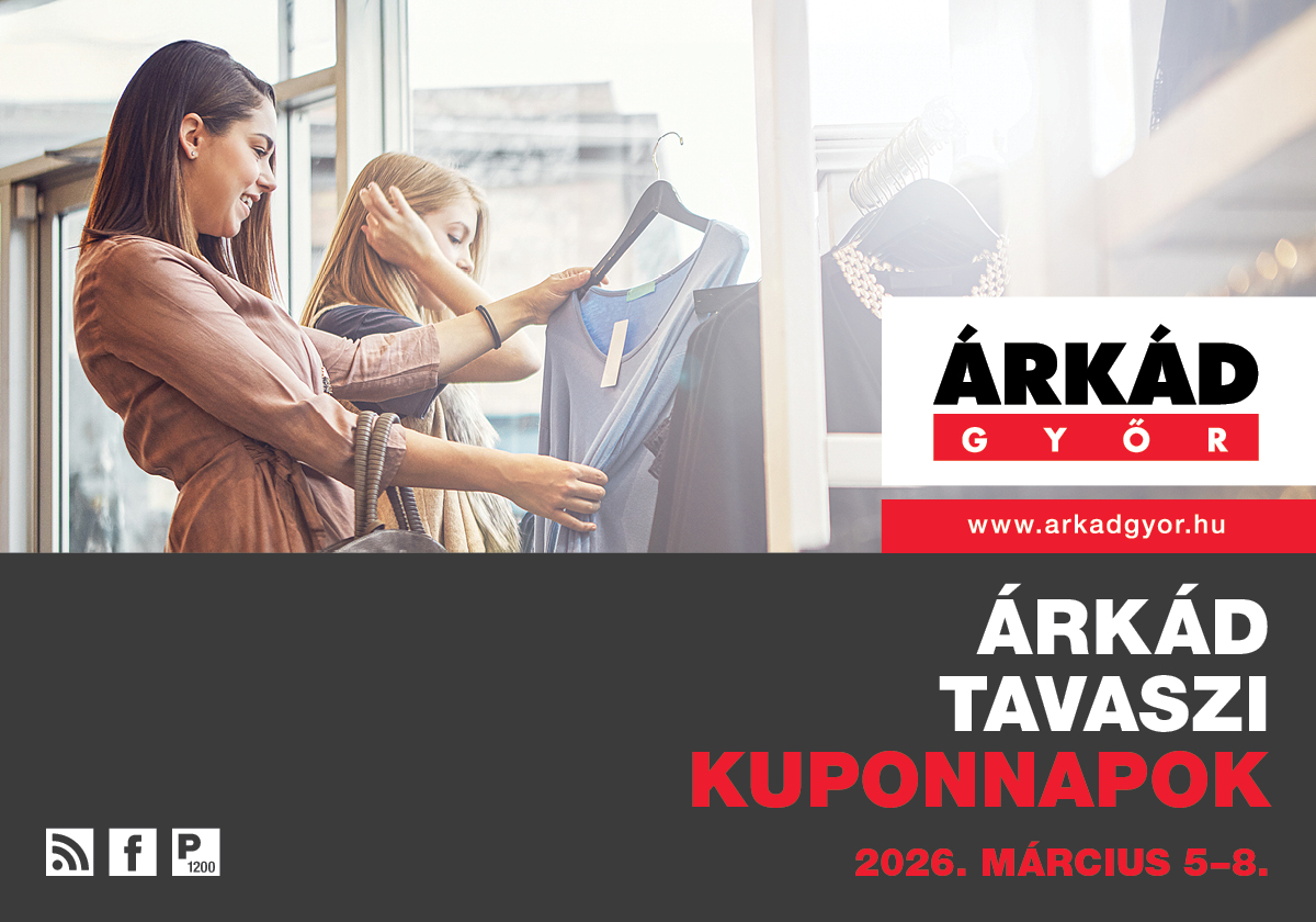 Válogass számos világmárka kollekciójából, és vásárold meg kedvenc darabjaid 20, 30 vagy akár 50% kedvezménnyel az ÁRKÁD Győr Bevásárlóközpontban 2026. március 5. és 8. között!